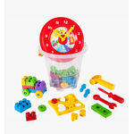 O kit vem com blocos grandes e coloridos, ideais para mãos pequenas, e peças que permitem montar um relógio interativo. Além de divertir, o brinquedo ajuda no desenvolvimento da coordenação motora, percepção espacial e habilidades cognitivas, tornando o aprendizado mais lúdico.