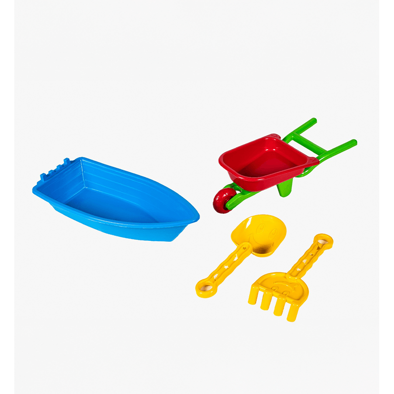 Aventura em terra e mar! Este super kit da Matrix combina o melhor dos dois mundos: um barquinho para navegar e uma carriola para transportar areia. Acompanha também uma pá e um rastelo. É o conjunto perfeito para as crianças criarem as mais incríveis histórias na praia.