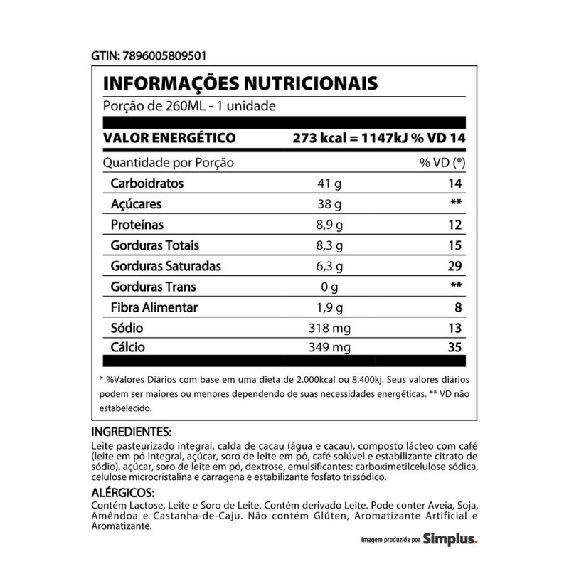 BebidasLeites e Bebidas LácteasAchocolatados e outros a base de LeiteBebida Láctea Cappuccino Chocolate 3 Corações 260ml