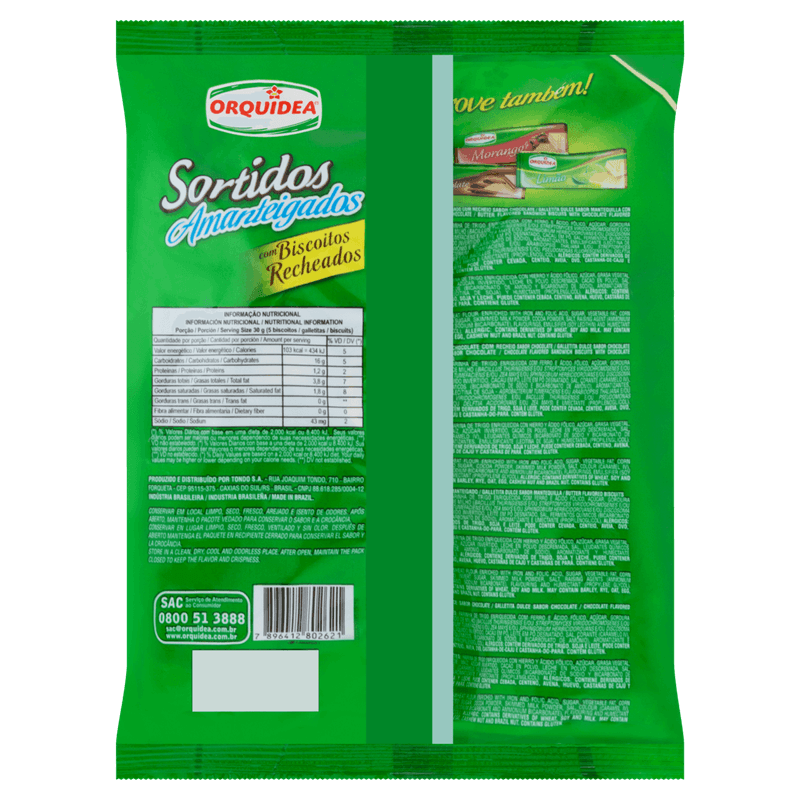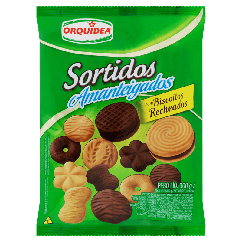 Biscoito Amanteigado Chocolate e Recheado de Chocolate Orquídea Pacote 300g R$ 7,99(R$ 26,63/kg)Adicionar