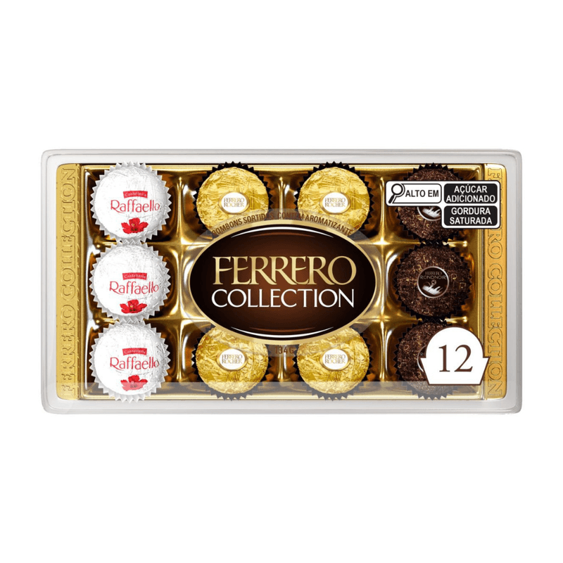 A embalagem com 12 unidades contém 3 unidades de Raffaello, 6 unidades de Ferrero Rocher e 3 unidades de Ferrero Rondnoir, é uma ótima opção para presentear quem você ama em datas especiais como Natal e Páscoa.