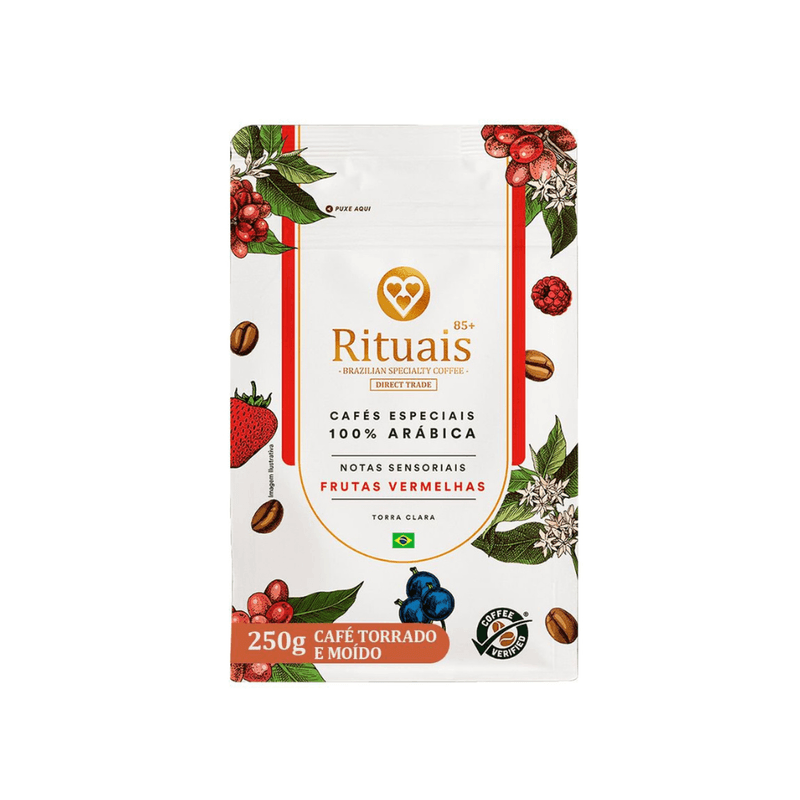 A linha de cafés especiais Rituais foi cuidadosamente selecionada para trazer a você uma diversidade de sabores que refletem as mais ricas culturas cafeeiras, inspirados nos momentos especiais e o que eles nos recordam, os cafés Rituais são uma junção do café e seu aroma favorito, um verdadeiro convite para o seu paladar. Nossos Café Especial Rituais 85+ 100% Arábica, com Torra Clara e notas sensoriais de Frutas Vermelhas, proporciona um dos mais requintados sabores em sua xícara, criando momentos único e especiais. Quanto a doçura do aroma das frutas, com o blend 100% arábica, é impossível não se deixar levar. A torra clara de grãos brasileiros garante a textura e sabor certo para a pausa do seu café.