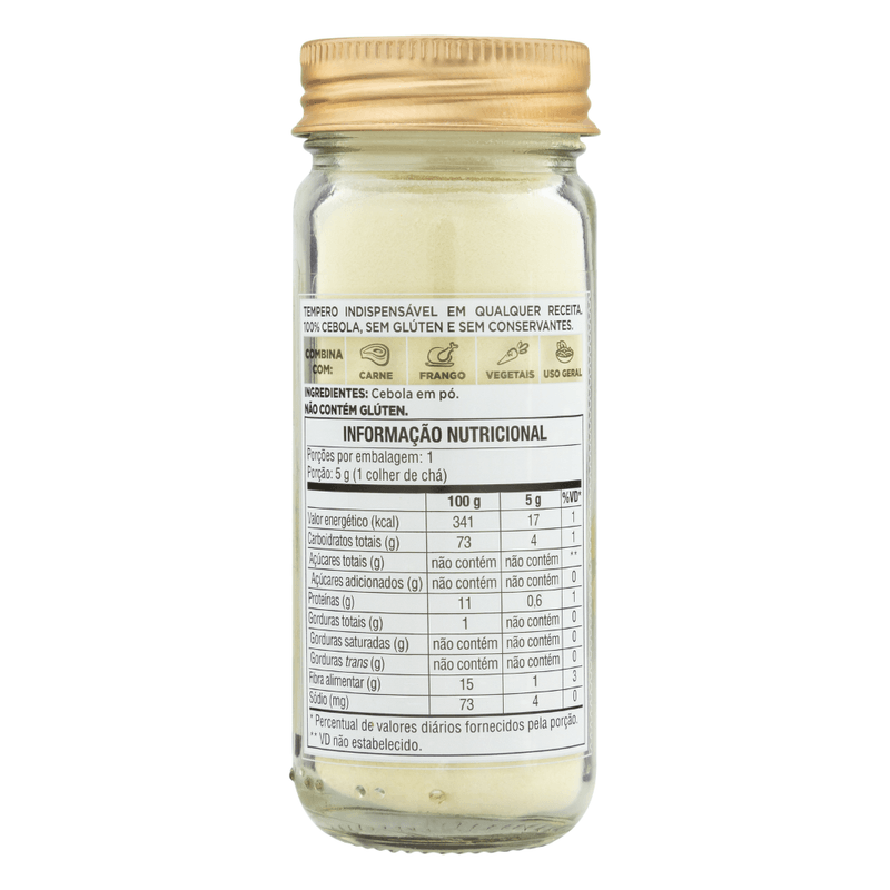 Cebola em Pó BR Spices Essencial Vidro com Tampa Dosadora 45g. Ingredientes: Cebola em pó.