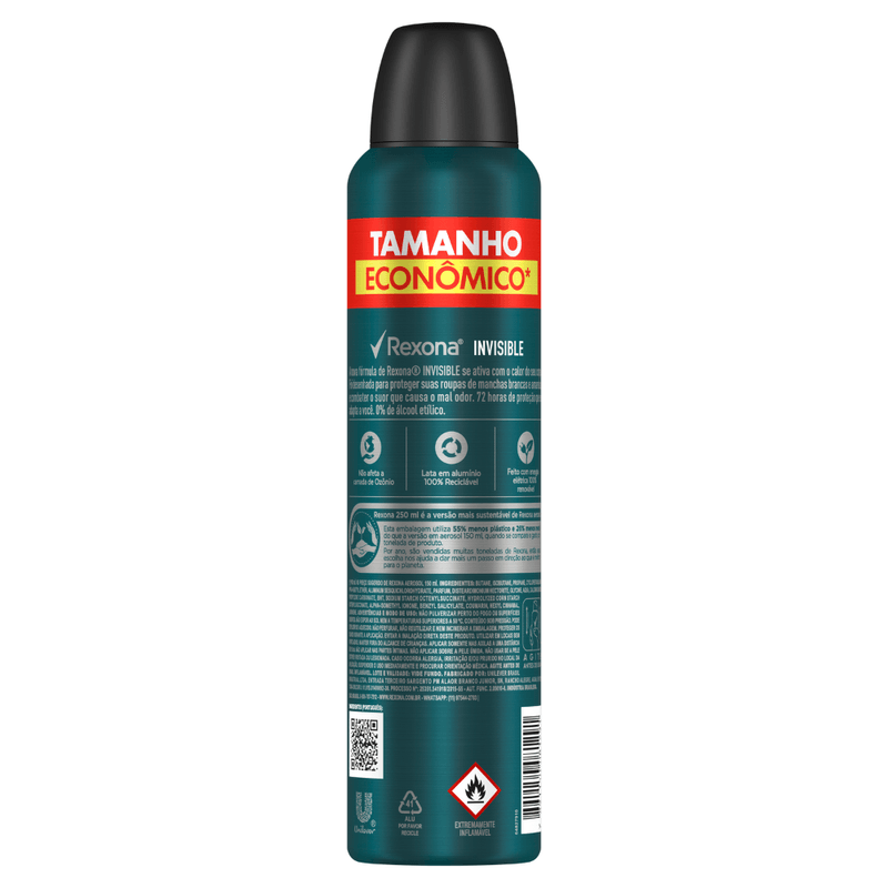 Antitranspirante Aerossol Rexona Men Invisible 250ml Spray Tamanho Econômico