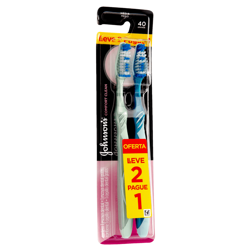 Escova Dental Média Johnson'S Comfort Clean 40 Grande Leve 2 Pague 1 Unid.