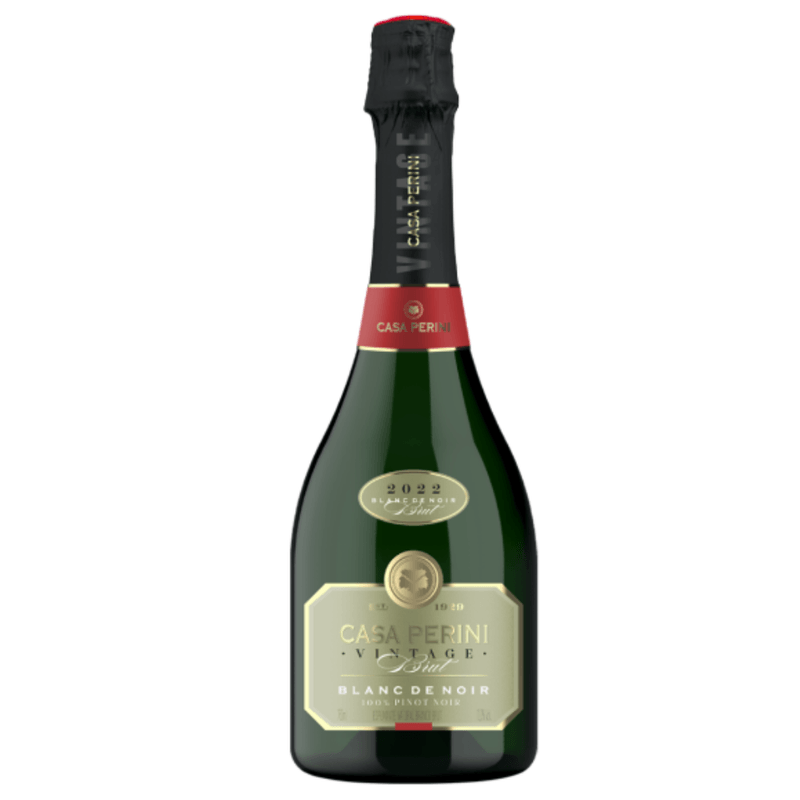Espumante brasileiro da Casa Perini Vintage Blanc de Noir 750 ml, produzido no Vale Trentino (Farroupilha, RS) com uvas Pinot Noir e elaboração cuidadosa que resulta em espumante seco, elegante e de acidez refrescante. Harmoniza com tábua de frios, queijos, frutos do mar, ceviche, carpaccio e pratos