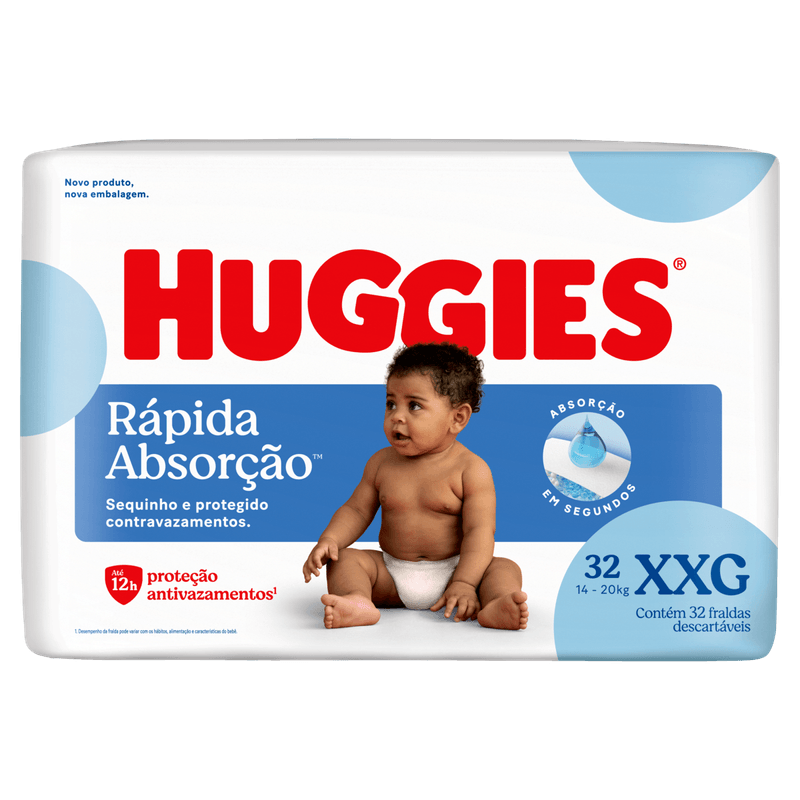 Fralda Descartável Infantil Huggies Rápida Absorção XXG 14 a 20kg Pacote 32 Unidades