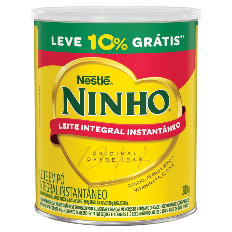Leite Pó Instantâneo Integral Ninho Lata 380g Grátis 10%