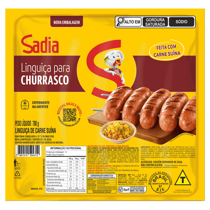 Linguica Toscana Perdigão Queijo Coalho 600g