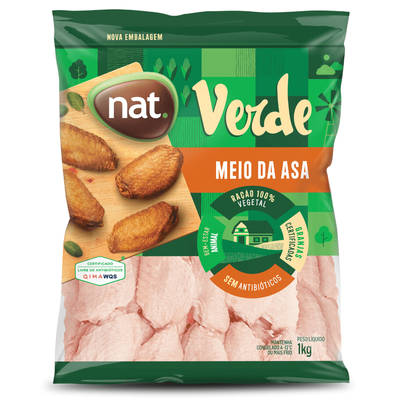 Meio Asa Frango Nat Verde 1kg Iqf