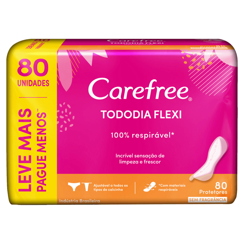 Higiene e BelezaAbsorventes e Higiene ÍntimaProtetores DiáriosProtetor Diário Sem Abas Carefree Tododia Flexi Pacote 80 Unidades Leve Mais Pague Menos