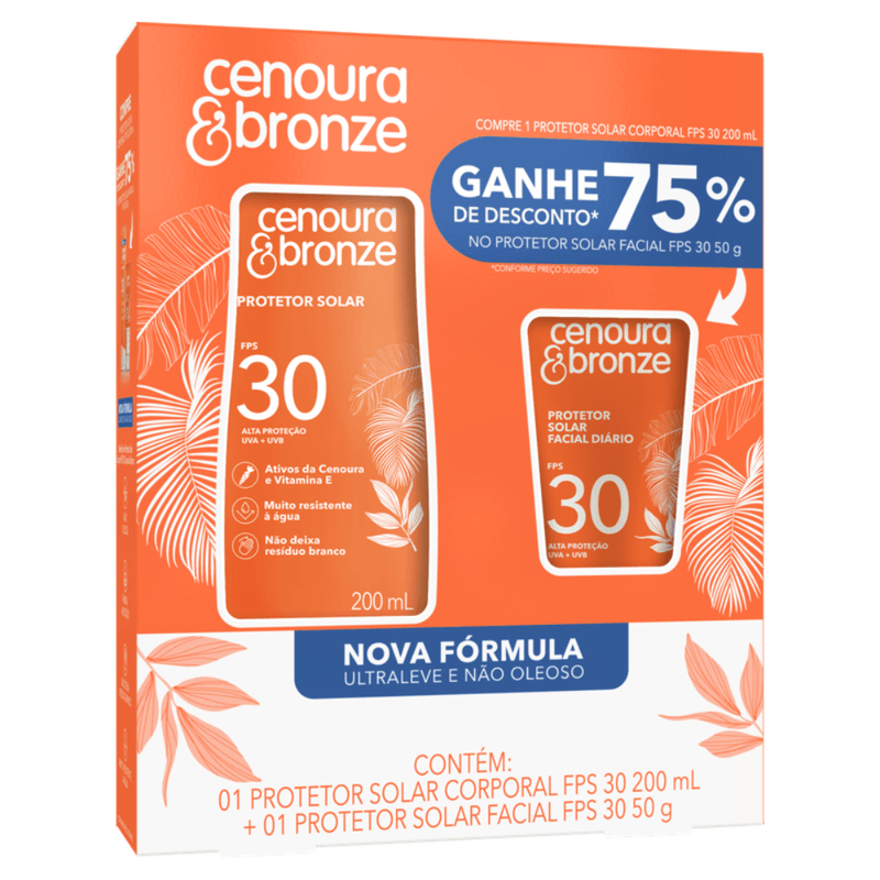 Protetor Solar Cenoura & Bronze Fps30 200ml Protetor Facial 50g