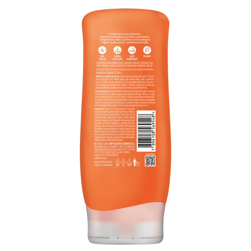 Protetor Solar Cenoura E Bronze Fps50 200ml