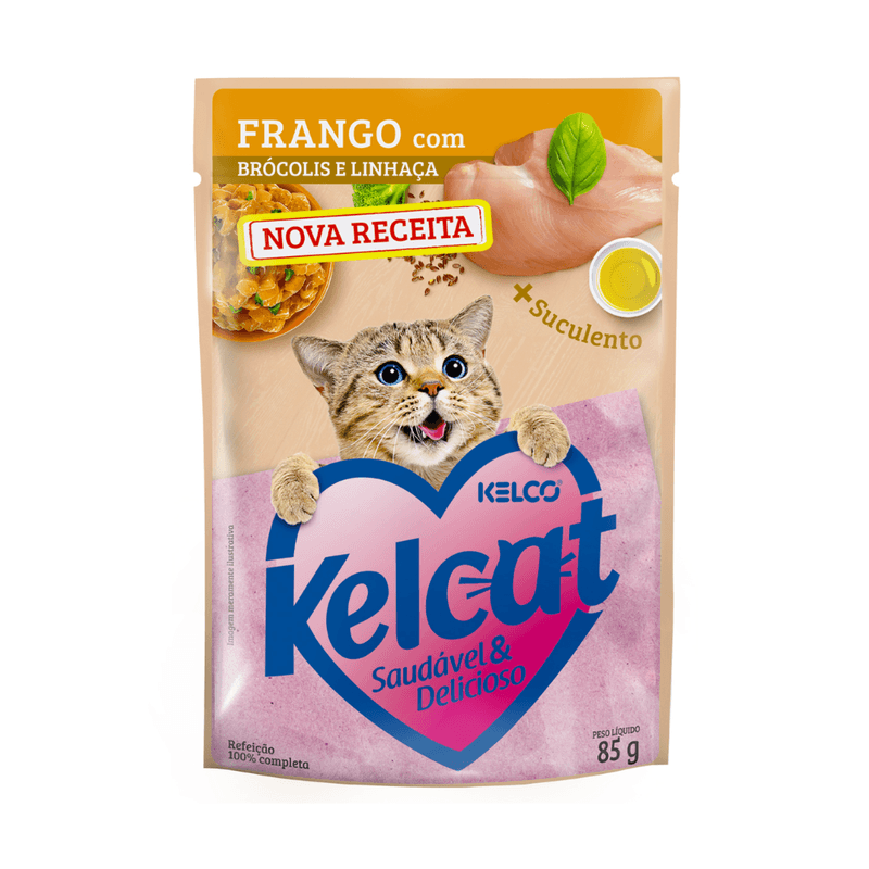 Ração Kelcat Frango Brócolis Linhaça 85g